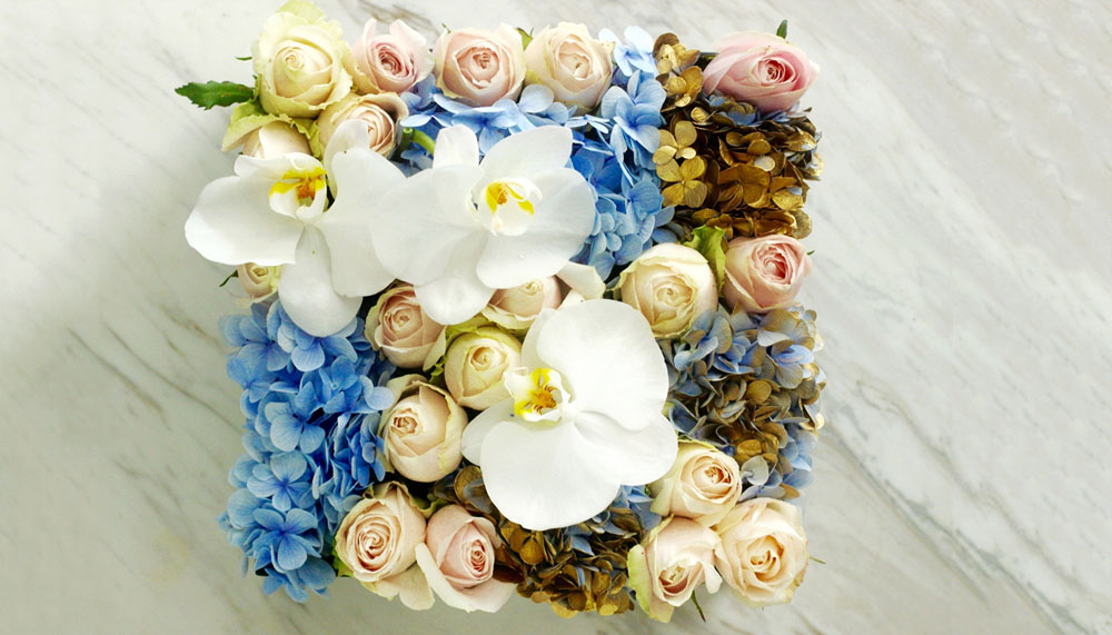 Utilising only the best of blooms, including peonies, roses, hydrangeas, cymbidium and phalaenopsis orchids, each creation is delivered in Maison des Roses’ signature black boxes, a careful juxtaposition against the fragile feminity of the flowers. Naturally, the displays themselves conform to the square shape, an unusual geometric choice that lends itself to dramatic displays.