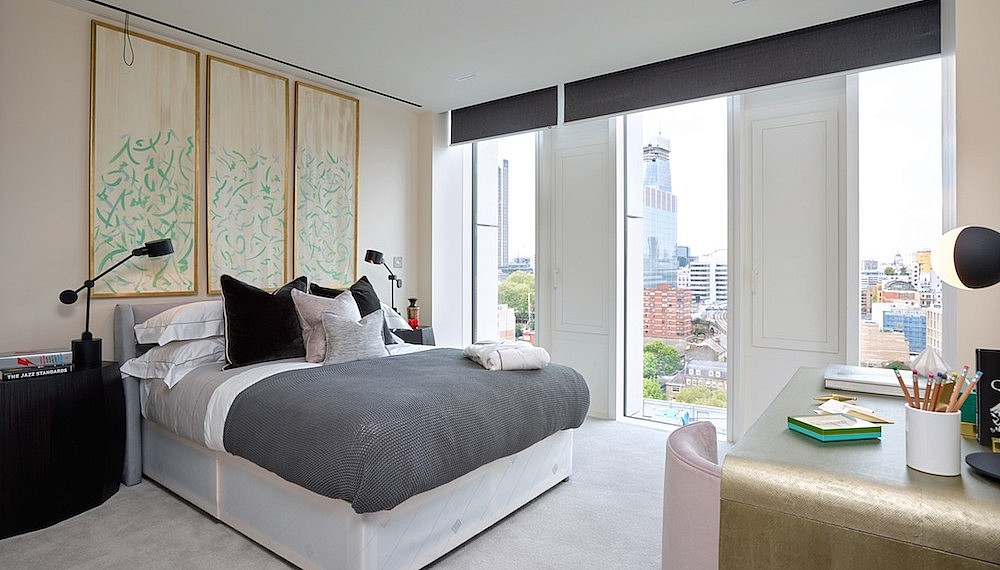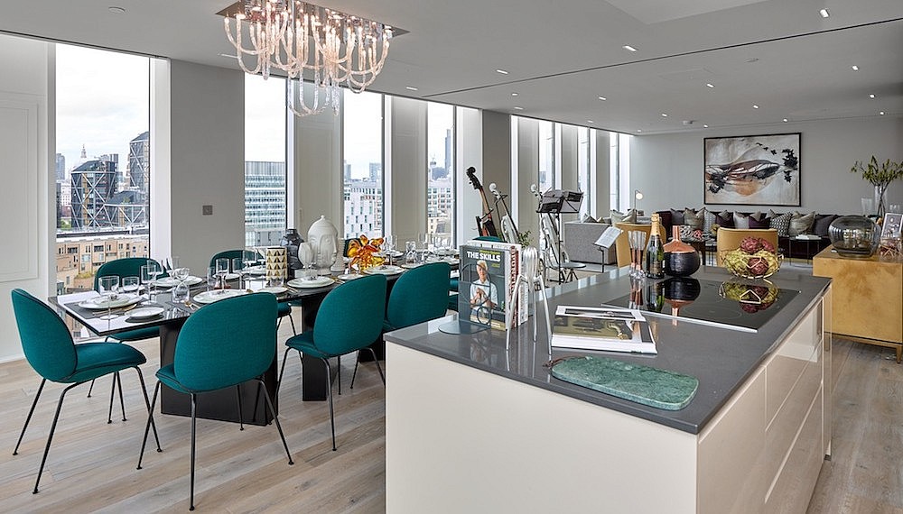 The Music Box is a great example of this, a striking collection of 41 apartments. The lower floors of the building are state-of-the-art home to London Centre of Creative Media and London Centre of Contemporary Music, with the residential ‘box’ cantilevered dramatically above. Surrounded by neighbourhood pubs, Southwark rail station and a vibrant community, The Music Box also lies just a 4-minute walk away from the Tate Modern and the Thames. Designed by architect Trevor Morris of SPPARC, the vertical white enamel panels between glass windows not only create the illusion of towering height from the outside, but also frame beautiful views of the London. There’s also an additional symbiotic connection; the interspaced enamel-glass design on the exterior is meant to evoke piano keys, while glazed bricks on the entrance facade are arranged match the Cream song ‘White Room’. Inside the apartments themselves, the generous space is a perfect canvas for high-end living, while the oh-so-slight distance from the Thames makes its prices oh-so-slightly-friendlier.