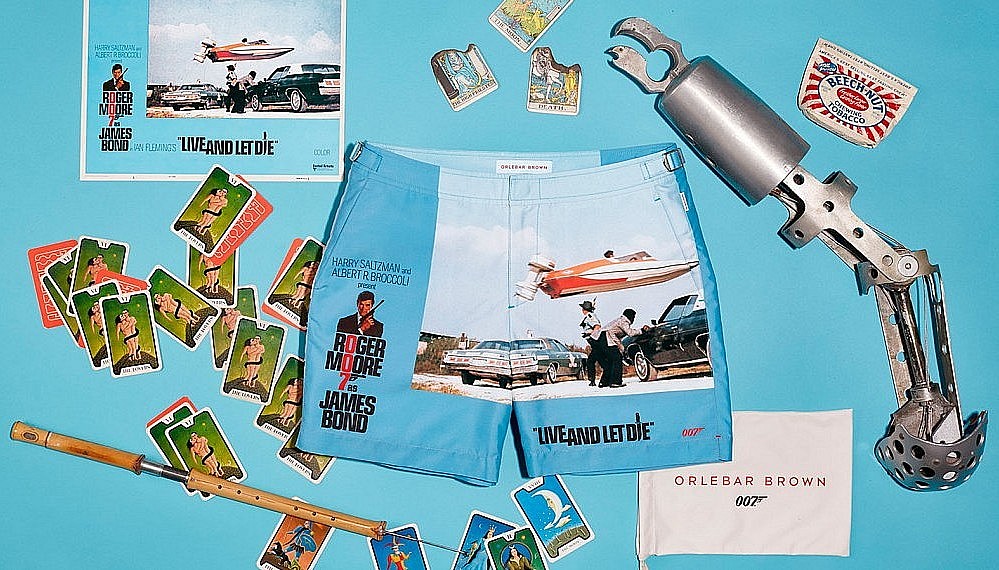 James Bond is a perennial source of fashion inspiration for brands looking to cash in on 007’s sartorial style. Most recently, Sunspel partnered with Ian Fleming’s estate to create a line of luxurious basics that draw on the author and his character’s style. Now, British luxury swimwear label Orlebar Brown is serving up another inspired collaboration, releasing an exclusive new collection of swimwear inspired by the world’s most famous action hero. Partnering with EON Productions, a U.K.-based production company that makes Bond films and controls worldwide merchandising, Orlebar Brown has made its latest splash with four new swim shorts printed with James Bond poster imagery. The collection debuts with snapshots taken from the promotional material from early Bond films such as the original Dr. No (1962), Thunderball (1965), You Only Live Twice(1967), and Live and Let Die (1973).