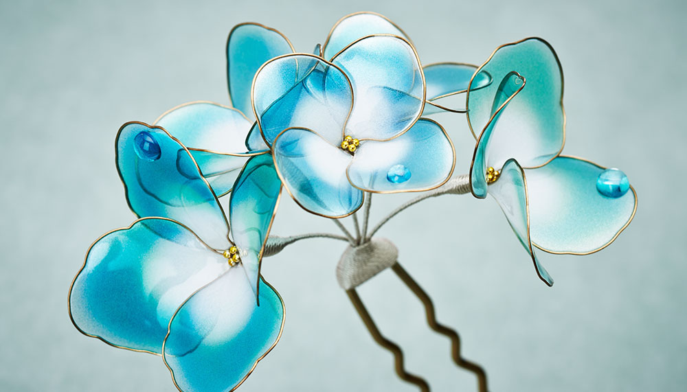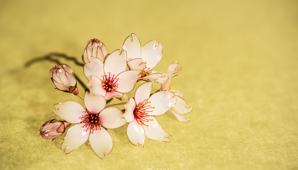 Sakae’s delicate creations must be purchased in Japan as the artist deems the hairpins too fragile for overseas shipping.