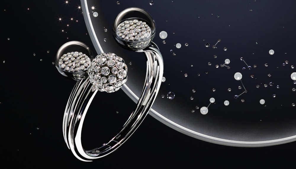 Expanding its universe with an imaginative exploration of the cosmos, Cartier’s limited edition Les Galaxies de Cartier collection ventures into unknown territory as design and craftsmanship, weightlessness and gravity, and reality and fantasy collide. An examination of four different themes connected through space – the alignment of the planets, fractal meteors, the Earth’s lights, and trembling stars – aims to defy the conventional laws of jewellery and add new dimensions to Cartier’s creativity and free expression. Present in the collection are allusions to the Milky Way with its solar systems and black holes, a view of the Earth from space at night, and the astrological phenomenon of planetary alignment.