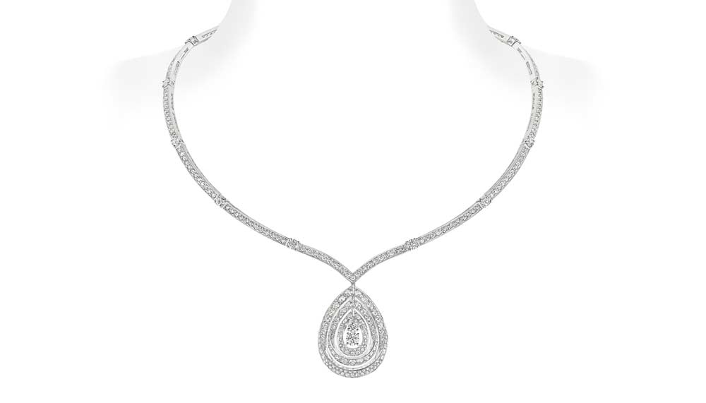 When a jewellery collection has Napoleon’s empress Josephine as a muse, one can only expect that which is fit for a royal. Chaumet’s new Rondes de Nuit line, launched under its existing Josephine Collection, is a selection of all-diamond jewellery that plays with the voluminous proportions of the pear shape. The 11 pieces comprise necklaces, earrings, rings, bracelets and watches. Some of the pendants come with adjustable clasps so the necklaces can be worn hanging down the front or the back.