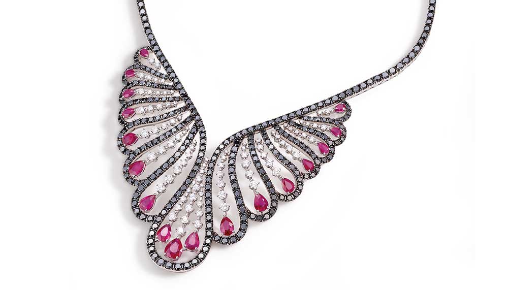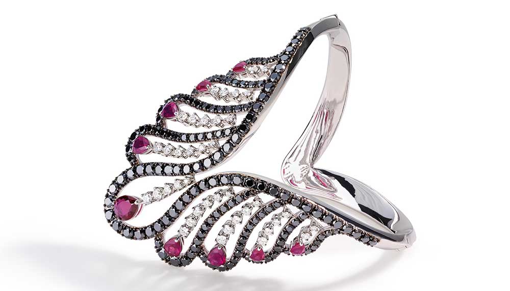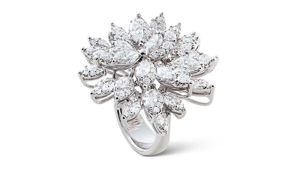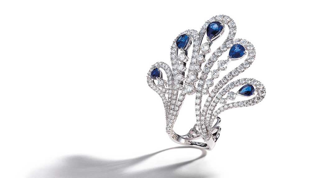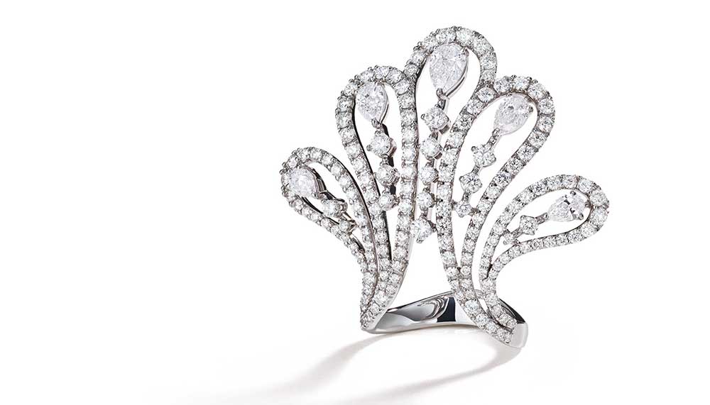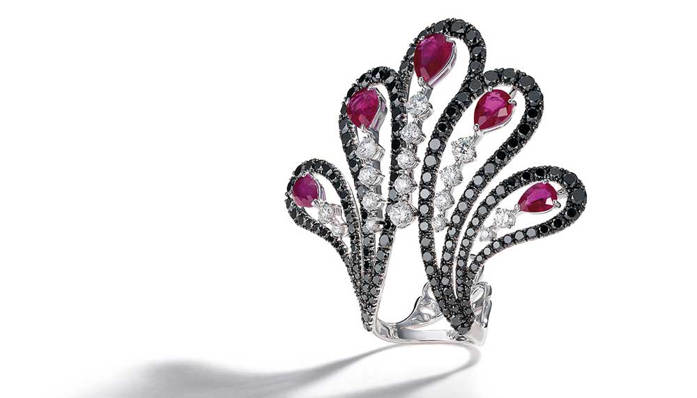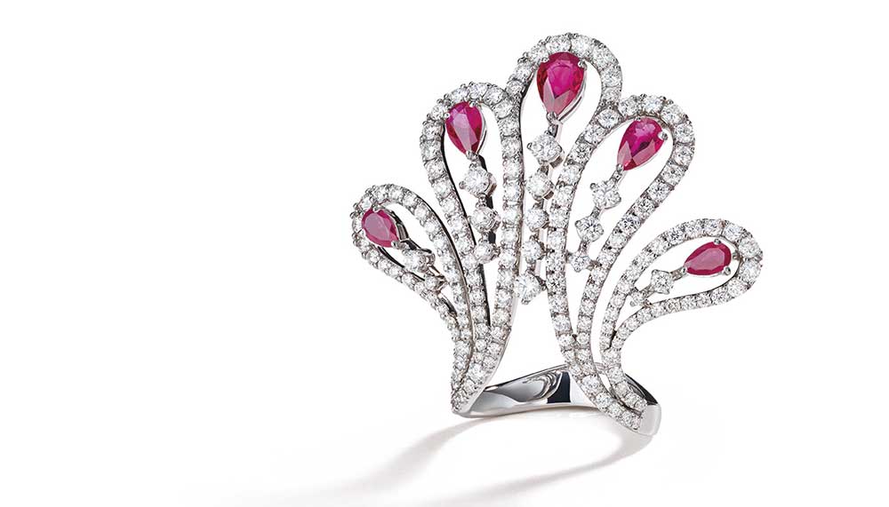 That same savoir faire and passion that runs through Damiani is also evident in this year’s masterpieces, ranging from the fan-inspired Vanita collection featuring drop-cut rubies to the Emozioni collection. The latter is a virtuoso display of gem-setting where Damiani’s goldsmiths combine two setting techniques; necessary in alternating pure marquise-cut diamonds with a stream of brilliants flanking the central diamond.