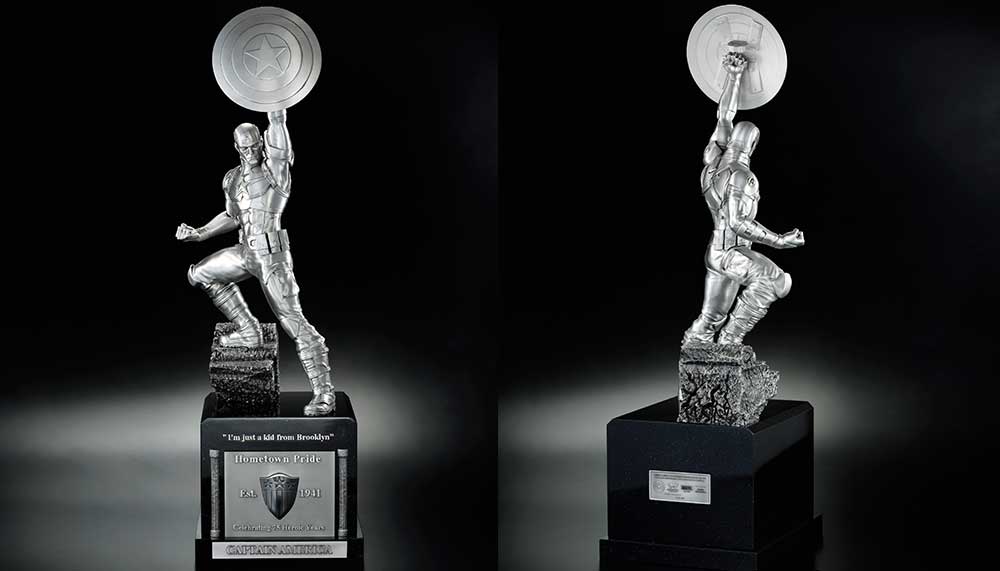 Produced for Singapore’s Comicave Studies in celebration of the Captain’s 75th anniversary, the pewter statue is a replica of the life-sized bronze statue of the superhero unveiled at the San Diego Comic Convention (SDCC) in July 2016. There will only be 100 pieces of the pewter statue produced, each standing at 930cm and weighing 15kg, including its wooden base. Packaged in a special wooden box, each pewter Steve Rogers is priced at RM19,500.