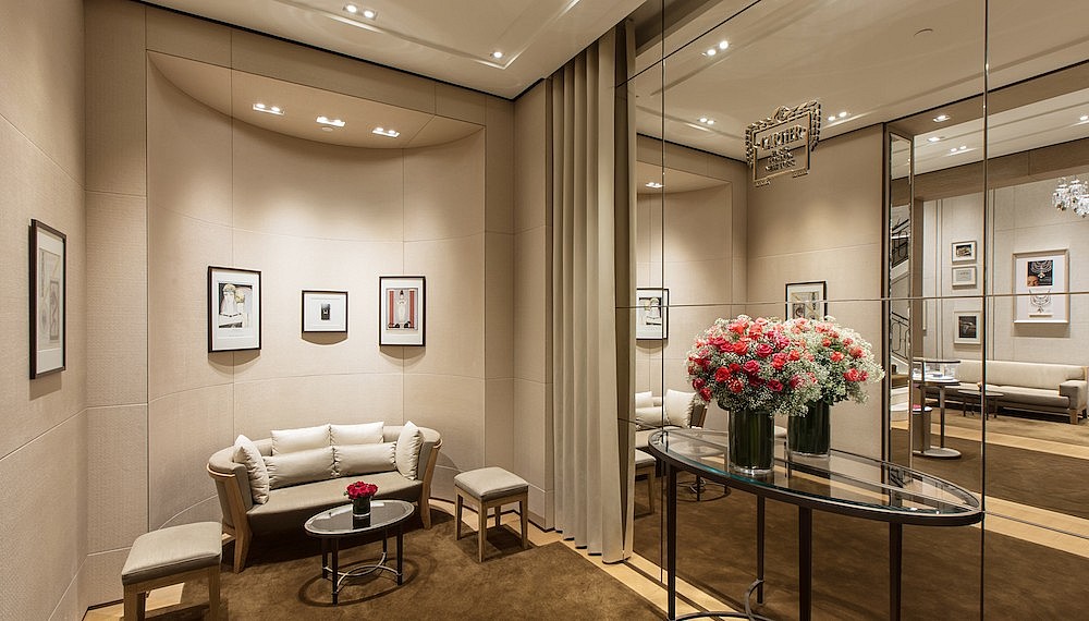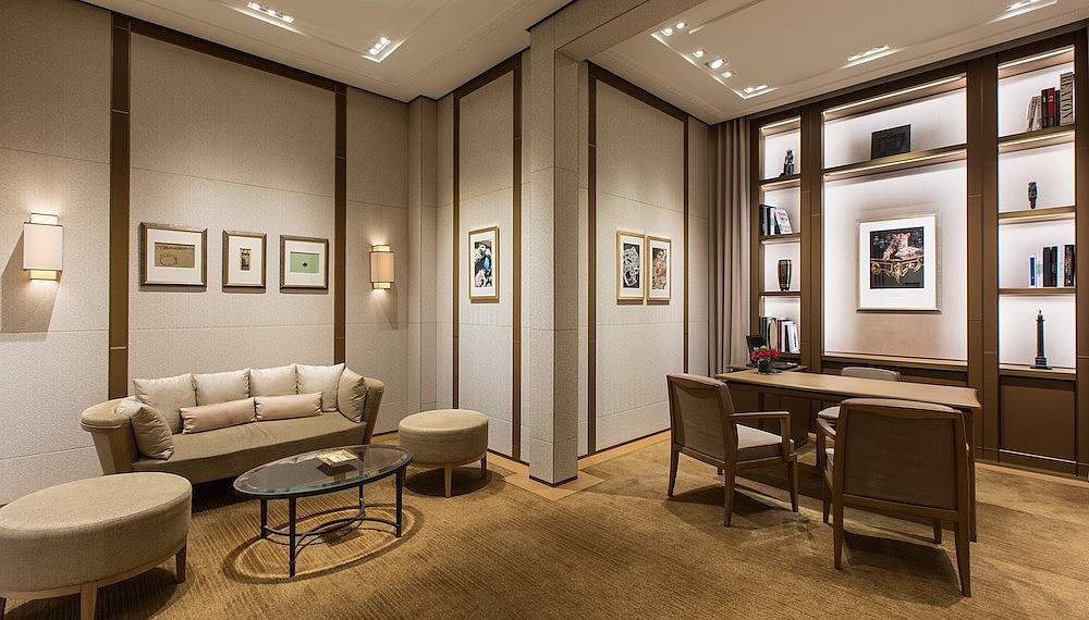 Inside, the boutique carries a stately air. Delicate crystal chandeliers and precious hand-made wall panels cast from solid bronze hold an aristocratic aura, creating a lavish and warm ambience. Ample space is allowed for Cartier masterpieces to shine in the Jewellery Salon and the Watches Salon, the latter of which features high horology creations including the Drive de Cartier and Panthere de Cartier. The boutique also houses a High Jewellery Salon, a first for Southeast Asia, where VIPs can conduct commissions and collections in confidence and privacy.