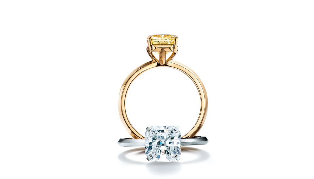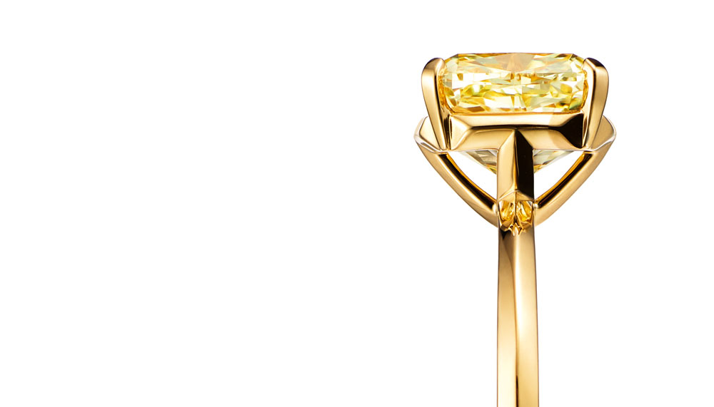 The last time a fresh range was introduced was in 1999, so this represents a significant milestone for the company. Among the hallmarks present on the ring, are the tempered reflectiveness of the platinum or yellow gold bands that do not compete with the diamond for attention. Plus Tiffany’s use of saturated yellow stones to retain their colour throughout the cutting and polishing process.