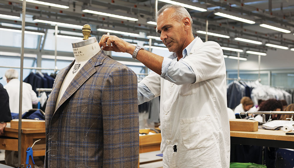 Cesare Attolini clients also expect their wardrobes to be special – just as they did in the 1930s when Vincenzo presented his groundbreaking design. For the company, meeting that expectation involves, among other things, having its fabrics made in Italy and England exclusively for the brand, in just enough of each fabric style (the colour, the pattern, and so on) to make 20 to 25 handmade suits. The brand employs about 130 tailors, including a 64-year-old man who started working for Cesare Attolini when he was 14 years old.