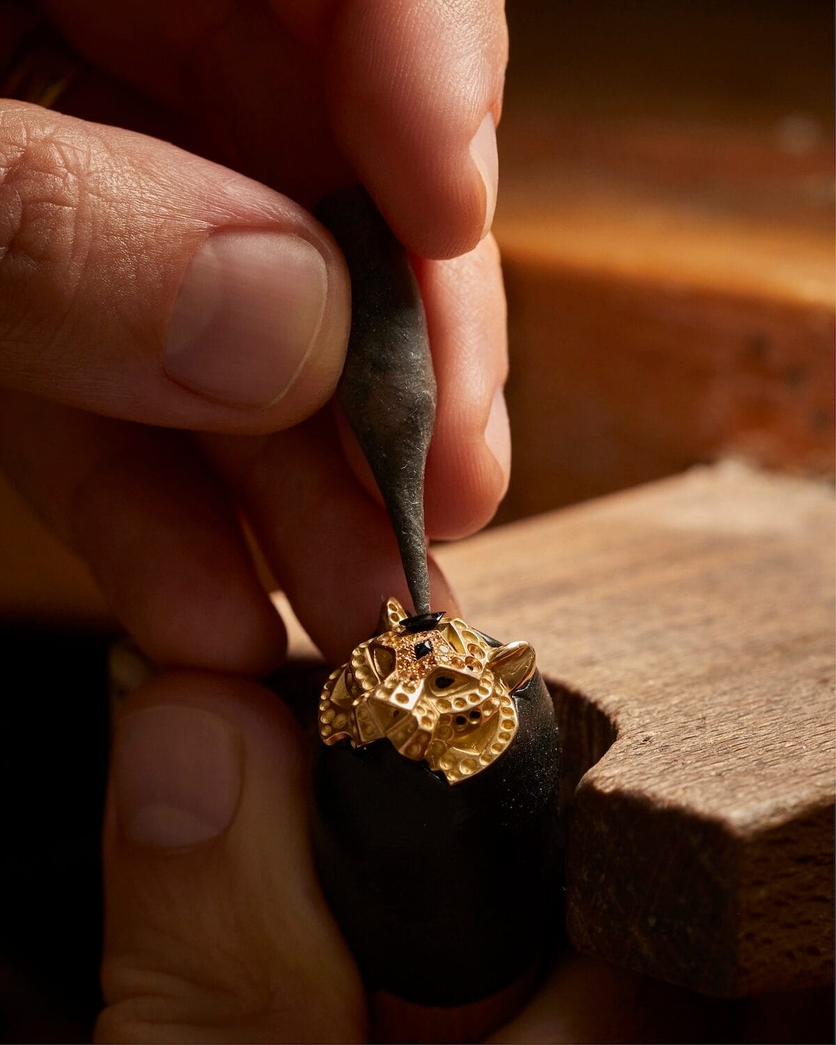 It is also the only major jeweller to have an in-house glyptics workshop, which preserves the ancient art of carving precious materials used to bring creations like the Panthère Aegis Ring to life by combining two petrified woods in warm, contrasting shades to symbolise the duality and union embodied by the two panthers.