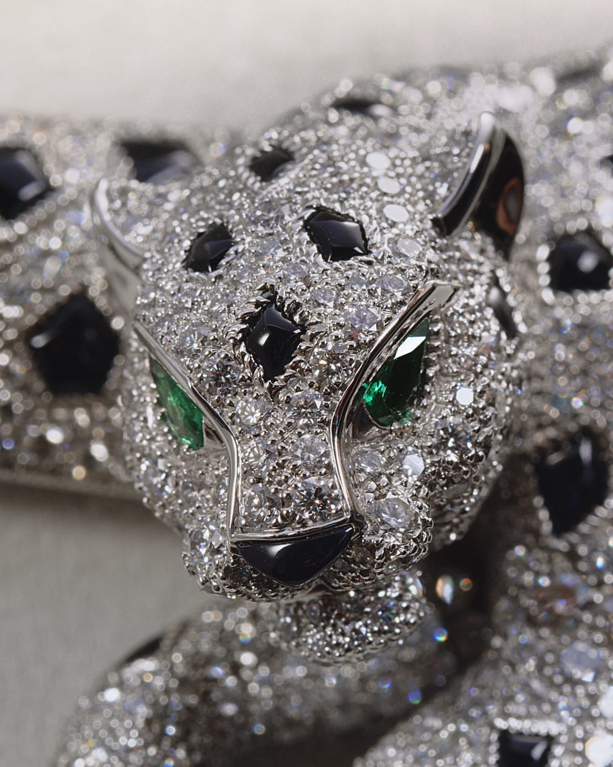 One of Cartier’s signatures is the fur setting, typically using onyx or sapphire to depict the panther’s spots or the tiger’s stripes. Each of these markings is cut by hand to produce a unique shape, mimicking nature, where no two tigers have the same exact stripe pattern.