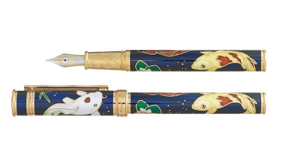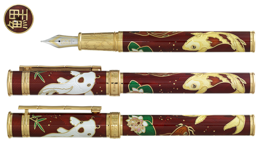 The collection, which depicts images of koi swimming around the barrel of the pen, was created to commemorate a trip that Oscarson took to Japan last year with his eldest son, Grant. There he learned that although “koi” is a Japanese loan word, it actually refers to all kinds of carp. The colourful fish that koi is associated with in English are specifically called niskikigoi, which is a word that also means affection and love. Therefore, koi have become symbols of love and friendship in Japan.