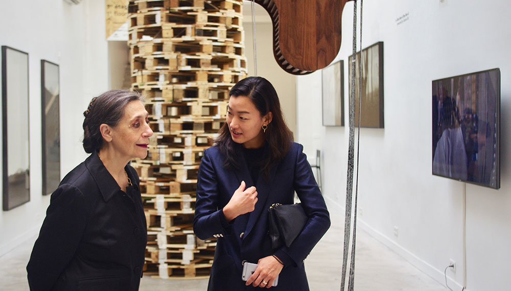 Fascinated by communication between the two Koreas, Kyungah Ham stands out for her Mona Lisa and the Others from the North installation. It juxtaposed portraits of Mona Lisa embroidered by North Korean artisans with interviews of North Korean refugees who have settled in South Korea.