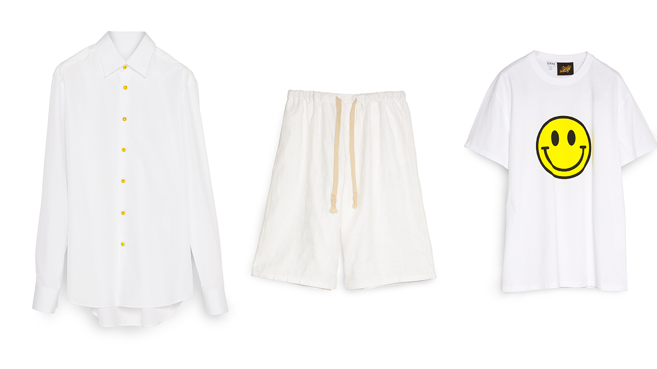 The iconic smiley has appeared in many forms throughout popular culture, from Watchmen to Nirvana and now the latest summer collection. Spanish fashion house Loewe chose to immortalise the yellow circle with oval eyes and an upturned mouth for its rave-y 2020 summer line Paula’s Ibiza.