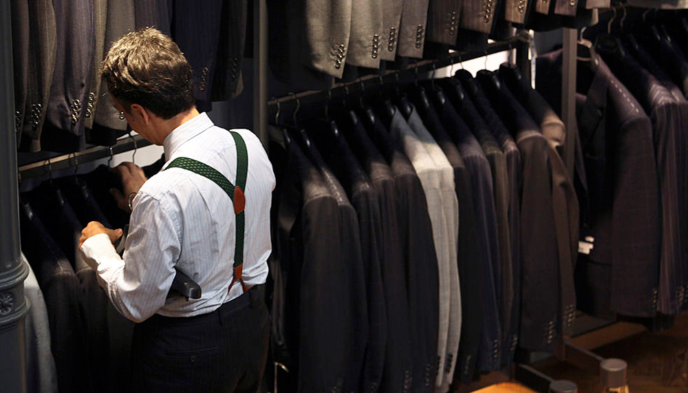 Indeed, old-fashioned meets new all along the Row. Next door to modern minimalist shops are traditional houses filled with historic memorabilia, including photos of royals and dignitaries donning formal suits and regal clothing. Below most shops, tailors continue to work in basement spaces as they have for decades. “The craft has not changed in 140 years,” says Brandelli.