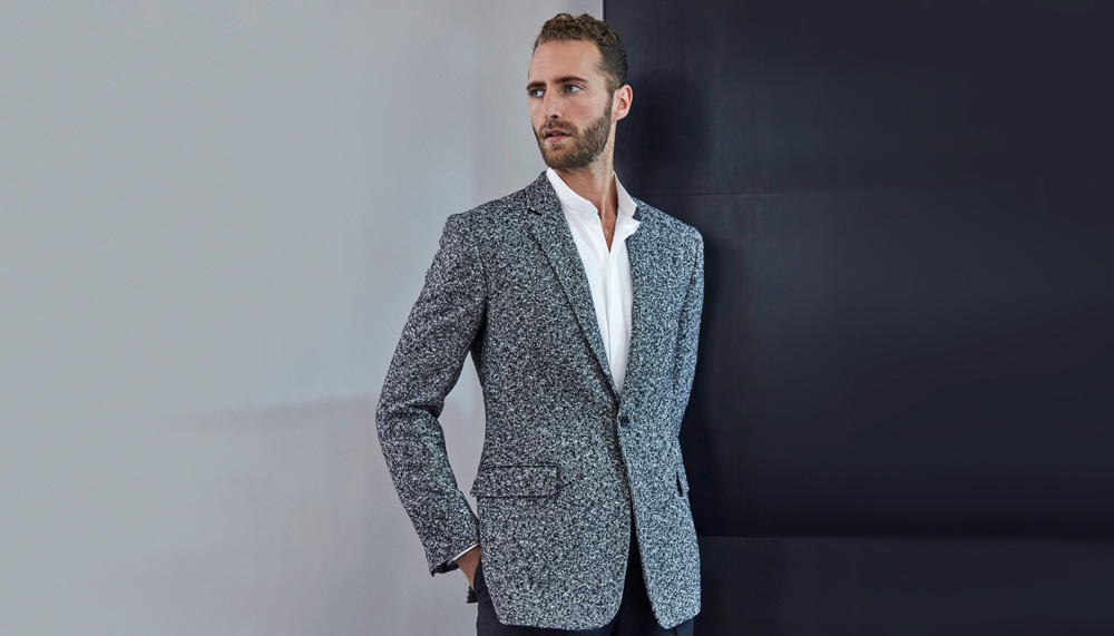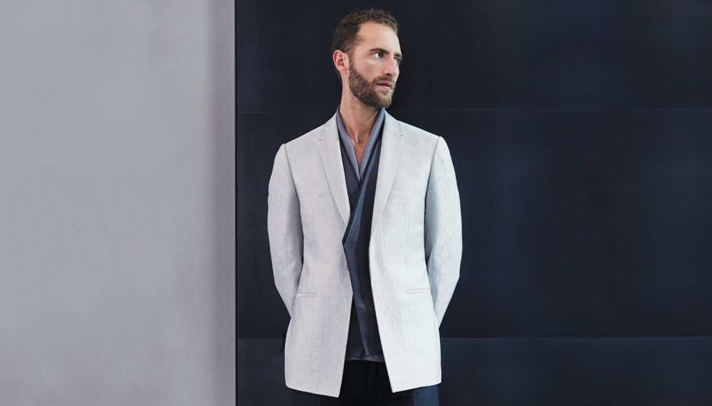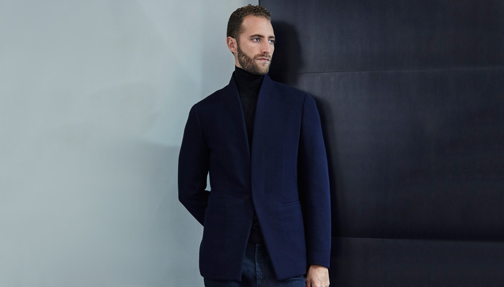 “Men want to look sexy in a suit,” says Darren Barrowcliff, the new design director for the Savile Row house Hardy Amies. The Detroit native’s own uniform consists of a streamlined black jacket and trousers with a T-shirt, and his take on modern tailored clothing pairs the unexpected, such as a suit jacket with tailored cargo pants and evening jackets with knit T-shirts or turtlenecks. “I want to make the concept of the suit a little more playful and modern,” he says.
