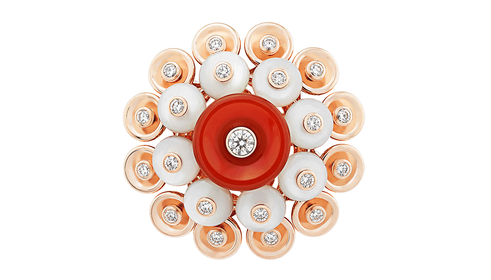 The Bouton d’Or collection’s style has its origins in the Paillette motif, which first appeared in the maison’s archives in 1939. The simple circular motif was pieced together to form rings and double bracelets and necklaces, soon finding its way to the cover of Vogue USA in April 1956.