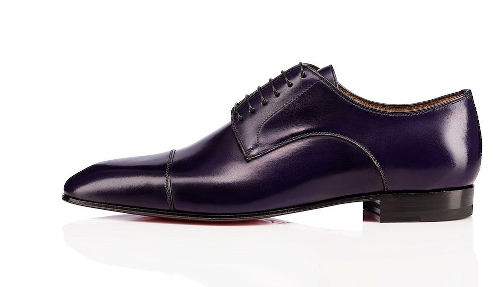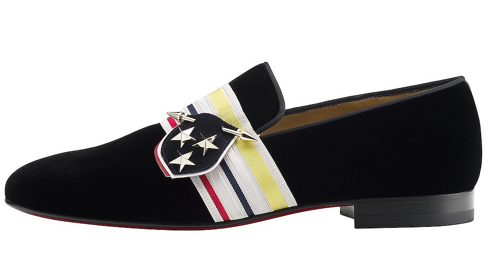 Known for its iconic red-soled heels, Christian Louboutin approaches its men’s collection with the same sense of sex appeal. The formal designs continue to break the norms of traditionally demure men’s dress shoes, often featuring similar levels of embellishment as his women’s styles. This season, Louboutin has taken inspiration from military regalia, adorning smoking slippers with details reminiscent of martial ribbons and badges. The collection also features cap-toed lace-ups in a hand-painted midnight-blue leather that provides a regal counterpoint to their flashy red soles.