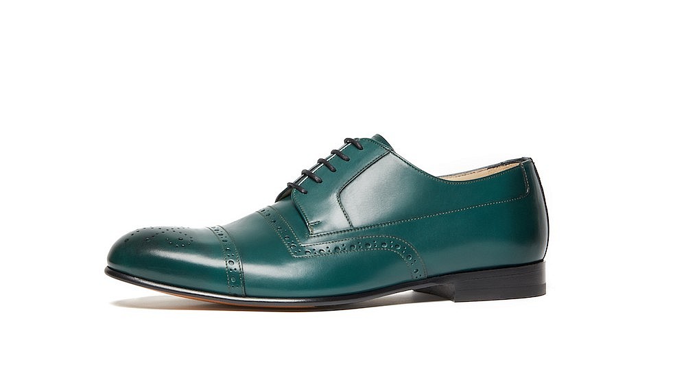 With its second men’s collection, Paul Andrew has continued to introduce strong formal designs that expertly ride the line between being daring and going over the top. Dress shoes clad in thin strips of eel that mimic high-shine PVC is an edgy update to the classic patent-leather style. Even the brand’s traditionally crafted brogues get an edgy update when done in a deep bottle-green leather