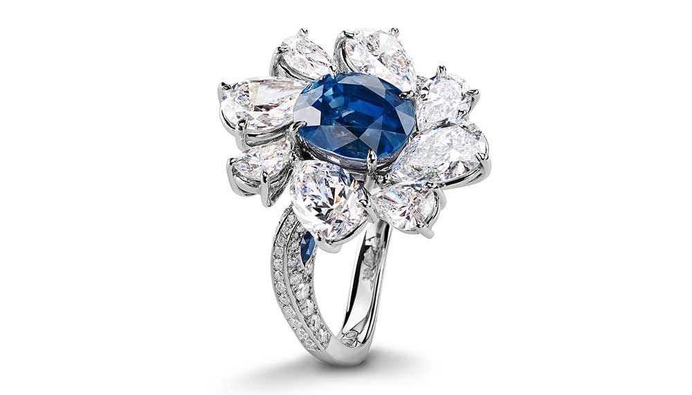 “In designing this, it was important for our in-house craftsmen to bridge our original inspiration with the ring.” For Ambord, that representation is the solitary grandeur of a lone jellyfish on high seas, which exists as an inclusion within the light-coloured Kashmir sapphire. “The creativity which we find in such beauty allows us to delve into a new and fantastic world, and to invite our clients to do the same.”