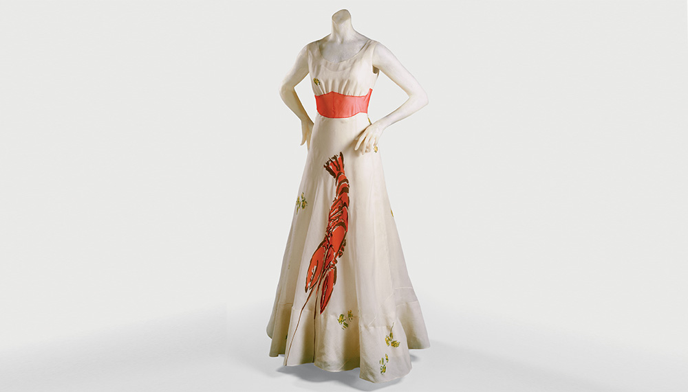 Exhibit articles range from pre-Raphaelite to Futurist and surrealist works, including Italian couturier Schiaparelli’s lobster dress, on loan from the Philadelphia Museum of Art. The famed crustacean was a common motif employed by Dali, who designed the print for the white organdie gown which was made even more notorious by an eight-page spread in a spring 1937 issue of Vogue, modelled by none other than American divorcee, Wallis Simpson.