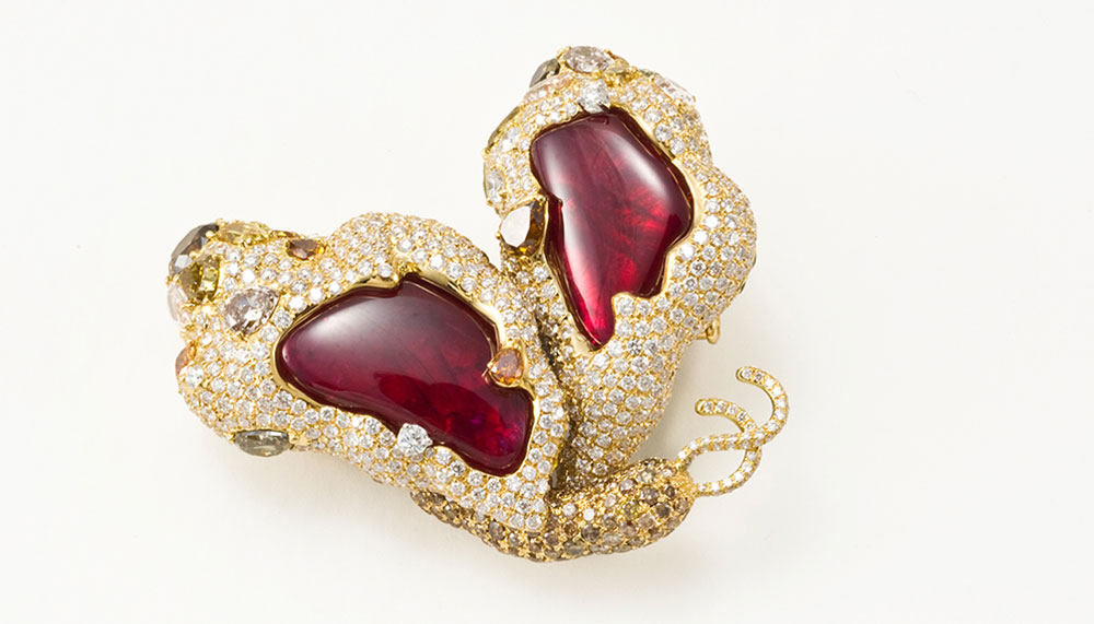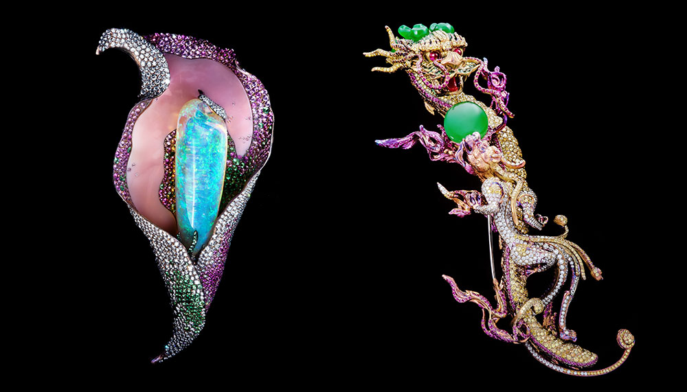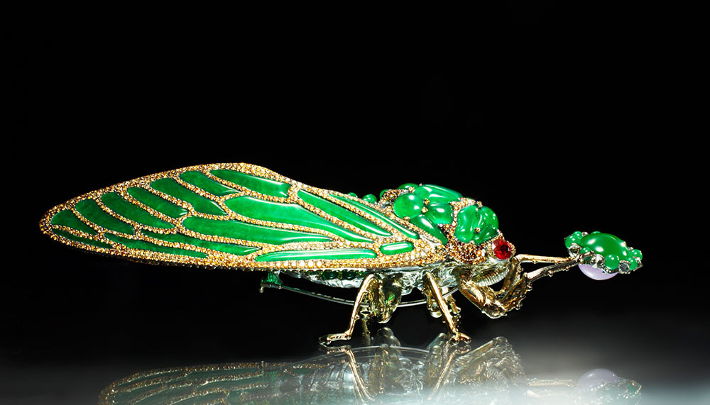 Designers, too, have a bias for the jewellery because it lends itself well to creativity. While stressing that he treats every piece as a sculptural presentation, whether it be a ring or a necklace, Wallace Chan, who trained as a sculptor, admits that it’s easier to treat the brooch as sculptural art, simply because “its shape is not limited by its function or the body part that it’s meant for.” This allows the designer to exercise his creative chops and show off intricate craftsmanship. Chan, who is the first Asian designer invited to exhibit at the Biennale des Antiquaires in Paris in 2012, has been repeatedly wowing followers with his brooches at every Biennale since then. The most famous is Stilled Life, a jadeite cicada, a finely calibrated piece of art.