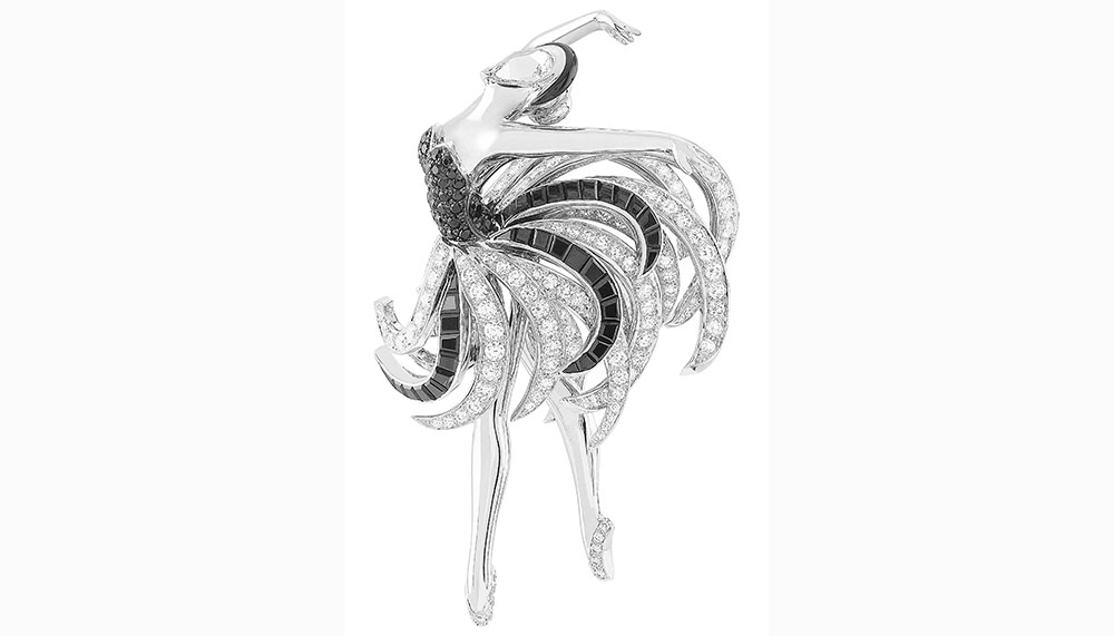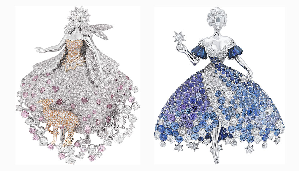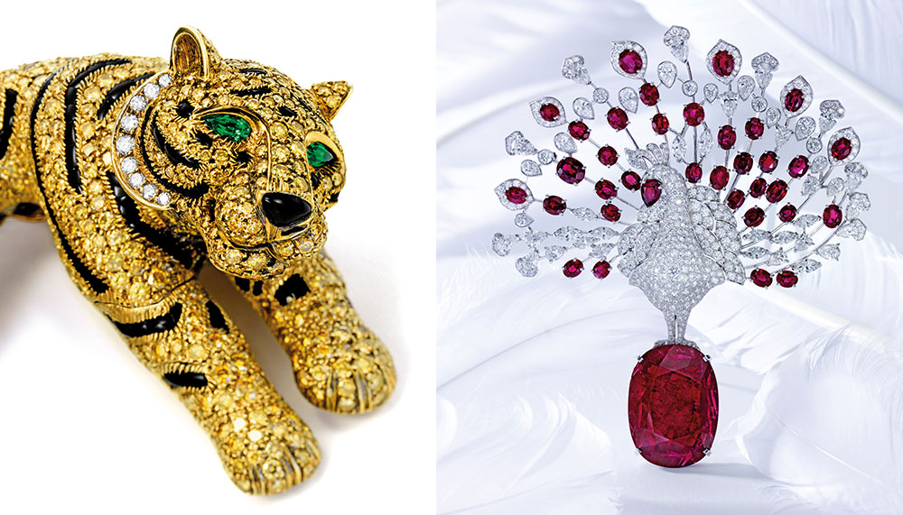Given its long-standing appeal among society’s creme de la creme, it follows that venerated jewellers to the rich and royal like Cartier, Van Cleef & Arpels and Tiffany & Co would have an extensive collection of brooches in their archives. Van Cleef & Arpels, in particular, has always used the ballerina or fairy as a subject – a figure of litheness and grace, qualities that even female powerhouses wish to project. In its 2014, Peau d’Âne Enchanted Forest collection, it narrates a classic French fairytale of the same name, which tells the story of a princess escaping from a father who has been driven insane by her mother’s death, to an enchanted forest. The vivid bursts of colours that convey the rich imageries in the story speak to collectors, for even high-flying women seem to have a weakness for the romantic and whimsical.
