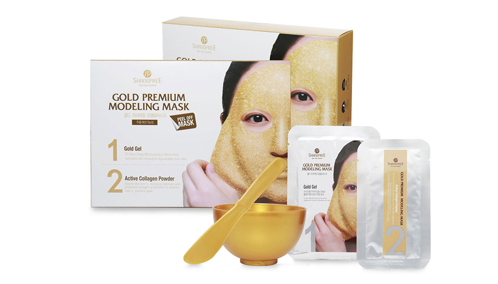 Gold premium modelling mask, Shangpree Infused with gold, the collagen paste hardens into a ‘rubber’ mask to remove impurities