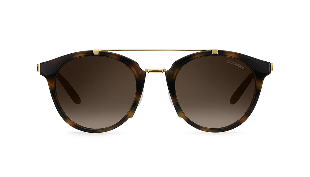 Carrera’s latest line of sunglasses introduces four classy new models, each available in a variety of eye-catching color combinations and three lens shades. The 125/S and 126/S feature elegant round- and drop-shaped lenses mounted onto light-weight nylon-fiber frames, each noted for their svelte double bridge and high quality steel temples. The classic aviator style gets a contemporary look with the bold 127/S, which comes in four color options and is distinguished by discreet golden clips fastening the bridge and brow bar to the frame. Carrera also puts a modern spin on a throwback look with its 128/S, which has metal laser-cut rounded lenses and is available in four configurations, including our favourite, gold with dark grey lenses.
