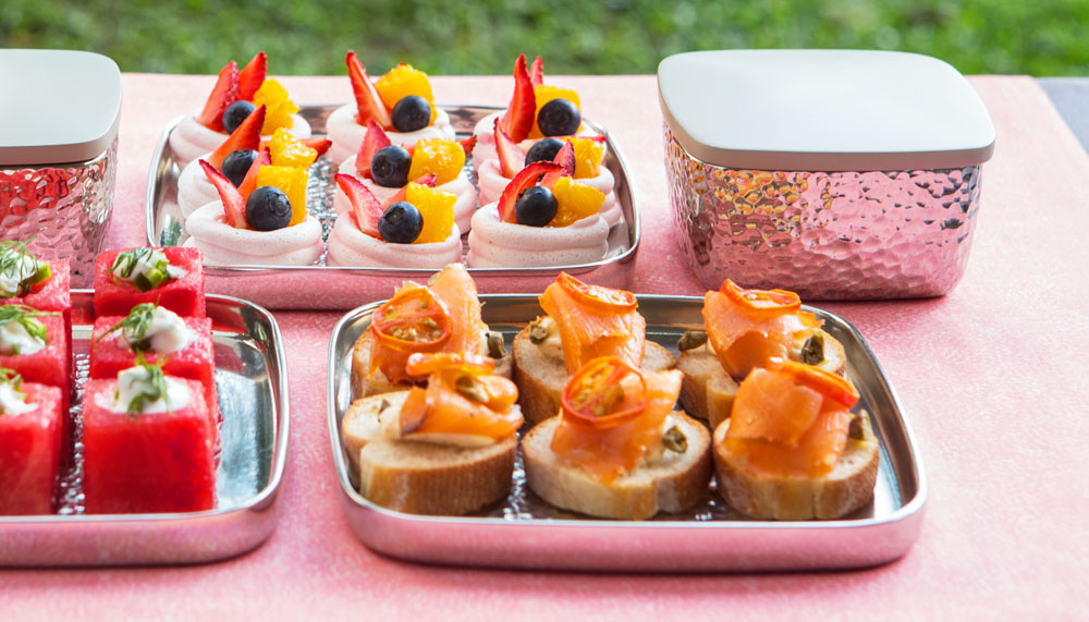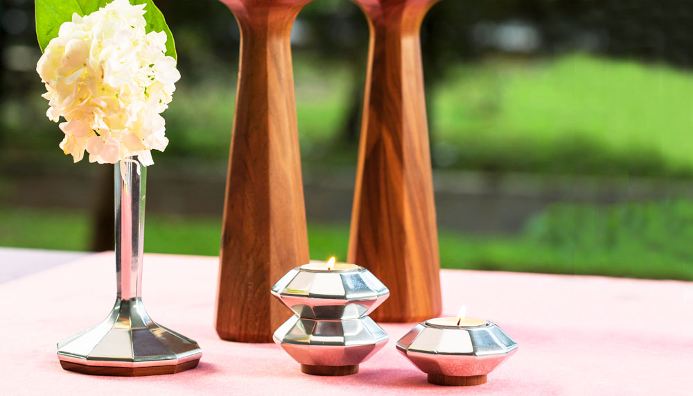 Celebrate or dedicate a housewarming with So, a collection of serving-ware depicting in sleek, minimal lines and accented by a hammered, dimpled finish that are nods to organic forms. So consists of a tray, tumbler, salt & pepper shakes and two lidded containers. For a more artistic finish, the Crystalline range – a jug, tealights, salt & pepper shakers, candlestand, bud vase and candelabrum – uses the geometric facets of a crystal as the basis for its inspiration. Designed by Australian designer Jarrod Lim, the latticed angles of the collection are bold, beautiful and bright.