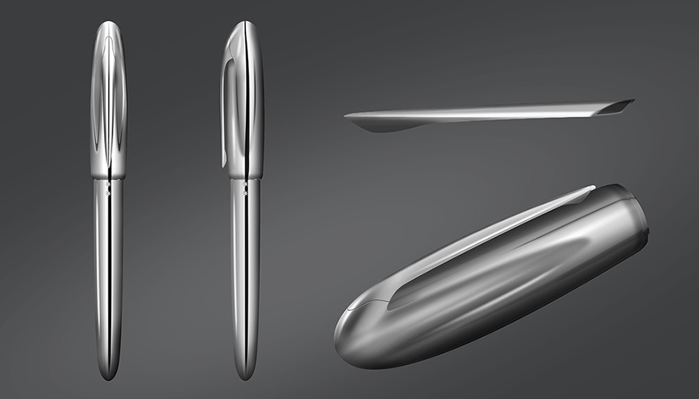 The Le Calibre series borrows this directly. A ring located at the top of the Le Calibre series allows the user to adjust the centre of mass, adjusting a small weight in the barrel of the pen to provide better comfort and grip while writing. A dial at the top indicates visually the relative balance. That it looks like the dial of a watch is no accident.