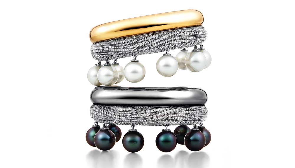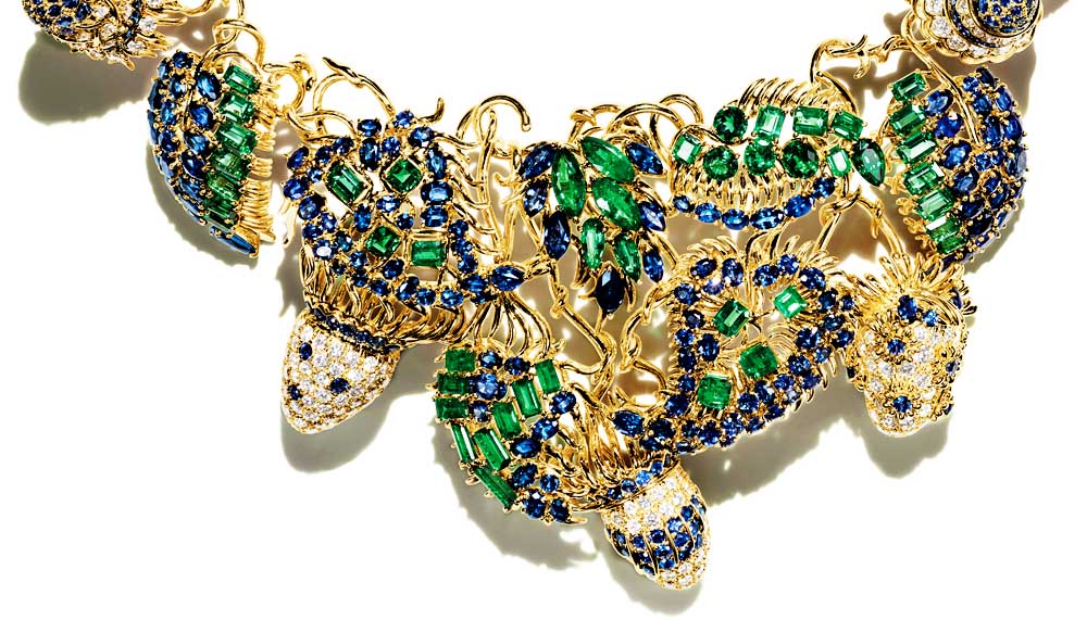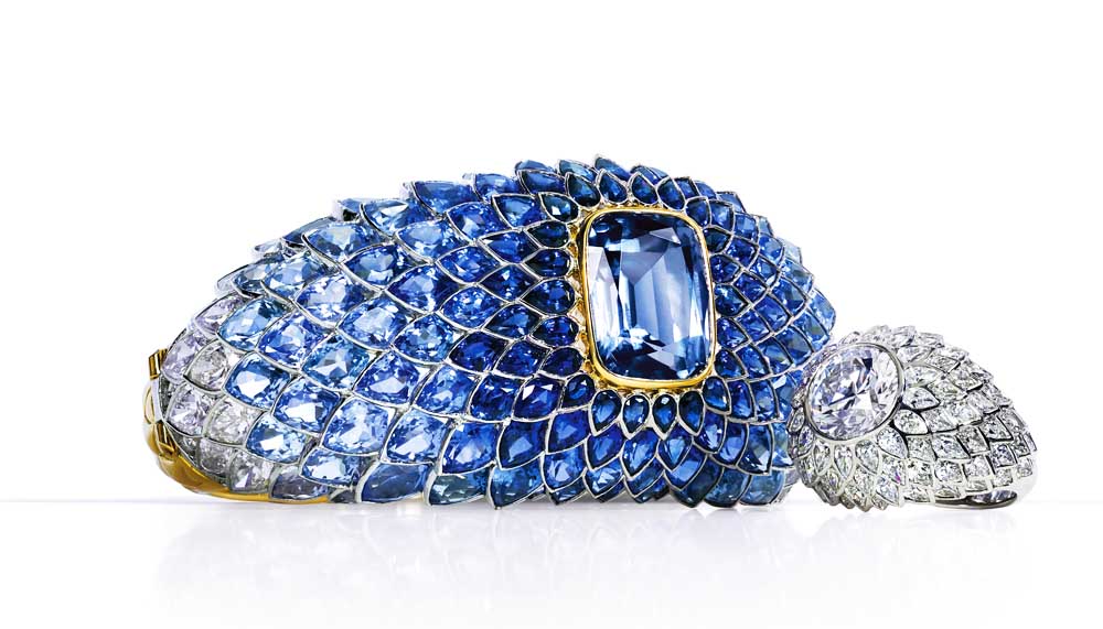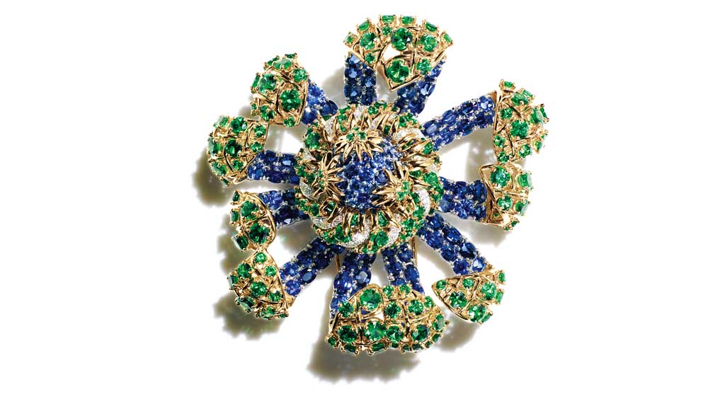 “Because I designed first (as opposed to working designs around existing stones), many gems had to be sourced,” she continues. Diamonds, sapphires and Tahitian pearls are expected in a high jewellery collection – “I’m a real diamond lover,” admits Amfitheatrof – but the 2015 Blue Book also includes unusual stones and when they are exceptional enough, the design process was reversed.