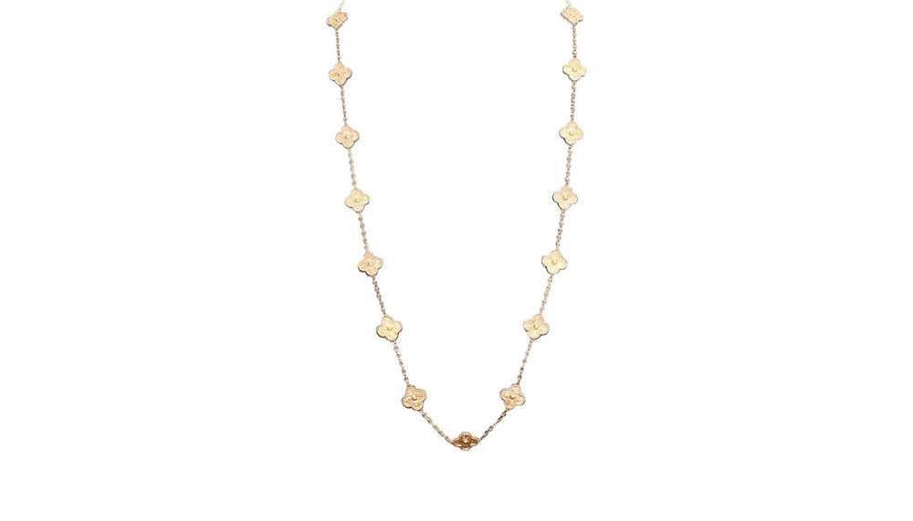 The mother-of-pearl and hard stones are treated in exactly the same way as diamonds – meticulously cut and polished to reveal their splendour – while melted gold gives form to beaded settings and is then hand-finished by jewellers. A gold case’s prongs can be delicately set to be united with a motif, while on Vintage Alhambra motifs with diamond paving, stones of different diameters are placed in a grain setting to highlight a golden bead. The openwork honeycomb structure, which displays the brilliance and lightness of the necklace, is also included in a final polish which reveals the luminous beauty of this unforgettable piece.