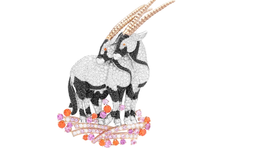 The Nuit d’Équateur necklace – a priceless Van Cleef & Arpels heritage piece – drew an admiring crowd, with cheeky ring-tailed lemurs dangling from its emerald fronds and a 5.07-carat pear-shaped diamond centrepiece. “Nature is a vast source of inspiration that you can explore endlessly,” Luchsinger commented. “The Maison is over 100 years old and nature has always been part of our DNA, which is why we continue to celebrate it. To be able to blend the future and past together like this makes for a wonderful exhibition of high jewellery pieces.”