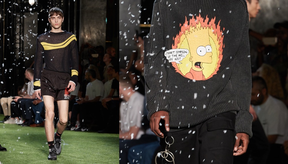 Virgil Abloh takes to the streets yet again for Off-White’s Spring Summer 2019 ready-to-wear collection, which harnesses the power of bold graphics, structured silhouettes, and strong denim attire. The collection, which Abloh has named ‘Jim Stark’ (prices range between RM150 to RM20,000), is based on his muse of a ‘universal teenager’ in New York, with multiple nods to skate culture, the concept of rebellion, and the city’s artistic, nostalgic nature. Subversion runs rampant across the tees, jackets, and elevated utility jeans decorated with industrial chains and charms, where Bart Simpson rubs shoulder with James Dean throughout this style-savvy, insouciant collection.