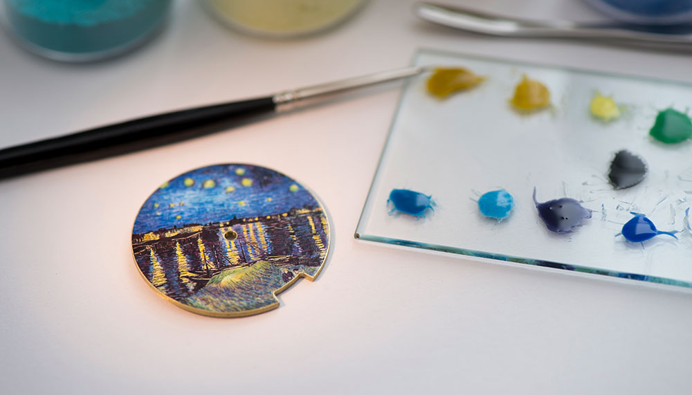 Compared to the original, which spreads over 200sqm, this reproduction covers a round dial of just 31.5mm wide, yet every stroke had been preserved in striking detail, as was the rich colour palette.