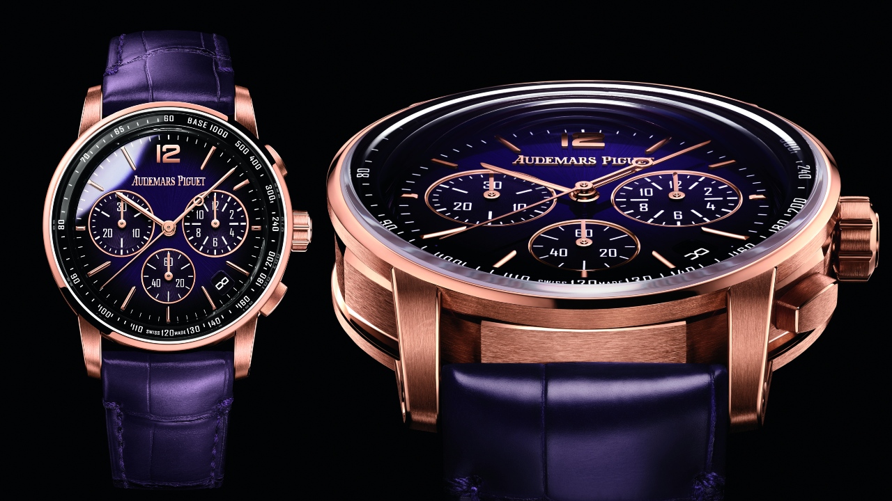 Audemars Piguet launched the Code 11.59 last year in a spectacular burst of abundance—13 references, including time/date, chronograph, perpetual calendar, automatic flying tourbillon, openworked tourbillon, and Supersonnerie minute repeater models made up the collection. Now 10 new variations have been added to Code 11.59. The new models include a two-tone in 18-karat white and rose gold, rather than the traditional steel and gold combination, along with new fume dials in several colours, including deep red, purple and grey. Two-tone gold cases are extremely rare in the history of Audemars Piguet wristwatches. Out of the 550 wristwatches produced and sold between 1882 and 1969, only eight examples combined two types of gold. The blend of white and pink gold was particularly rare, with only one such wristwatch recorded in the company’s archives before 1978.