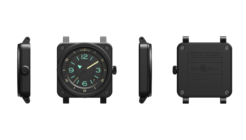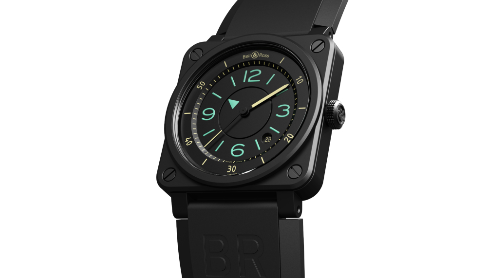 The workman-like functionality of aircraft instrumentation remains an endless source of fascination for Bell & Ross. A new timepiece, the BR 03-92 Bi-Compass (RM16,000), is limited 999 examples and reflects its navigational inspiration with a triangle hour marker mounted on a rotating disc. It seems like a simple indication, but discs can be tricky to implement — they need to be engineered carefully to remain perfectly parallel and not deform over the life of the watch. The dial has an additional layer of depth, thanks to its stepped construction highlighted by the minute markers, and the two-colour lume ensures great legibility and a bit of visual spectacle in low-light conditions. The glow will stand out brightly against matt black dial and ceramic case, the latter being a shaped in the iconic Bell & Ross square and measuring 42mm across.