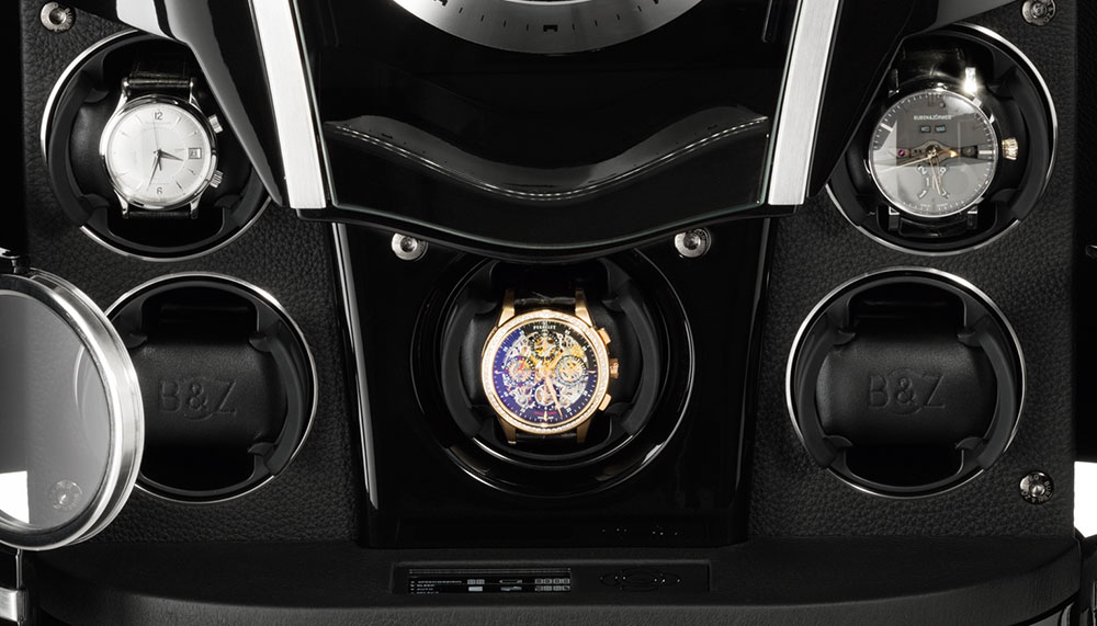The Agartos Tourbillon is the culmination of those four thousand hours contributed by a team of ten specialists brought together from different expertise – wood, aluminium, composite materials, glass, leather, mechanical engineering and electronic. The cool, curvy look is the result of a manufacturing process that involves five state-of-the-art axel CNC machines and 3D printing technology. And the pedigree gets higher. The high gloss metallic lacquer that covers the watchwinder is akin to those found on supercars, while the brilliant ‘stardust’ lacquer itself takes six month of sanding and polishing to achieve.