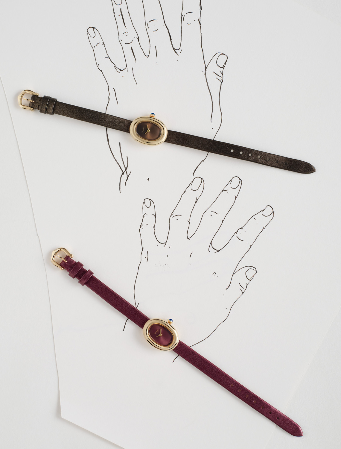 For those who prefer subtle elegance, the new mini versions will do the trick. Encased in gold and available with a metal clasp or bracelet, they come in lacquered black, plum, or bronze dials, which add a touch of pizazz to the watches’ renowned sophistication. For a bolder statement, consider the slightly larger option in full yellow gold.