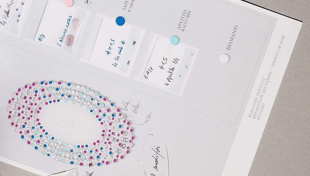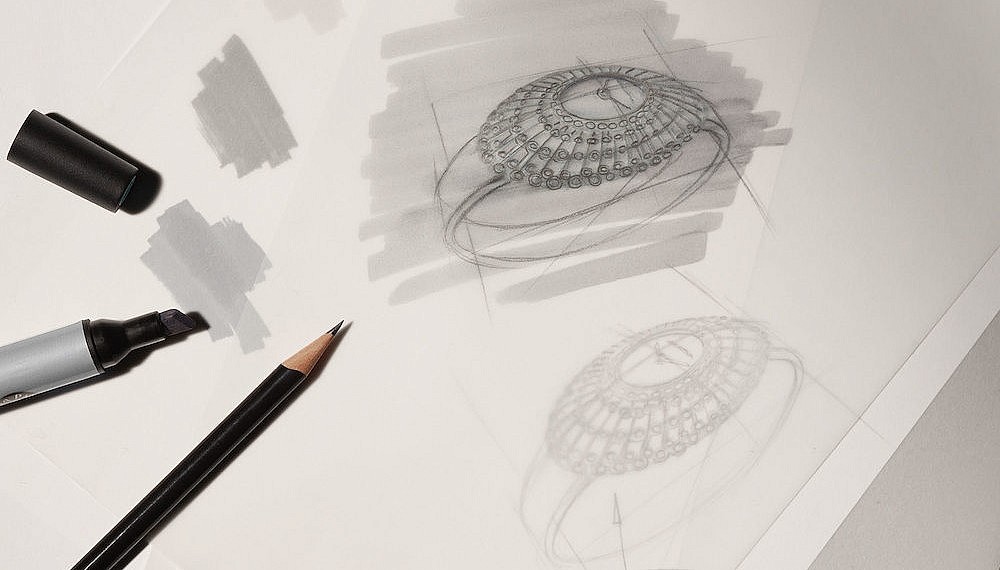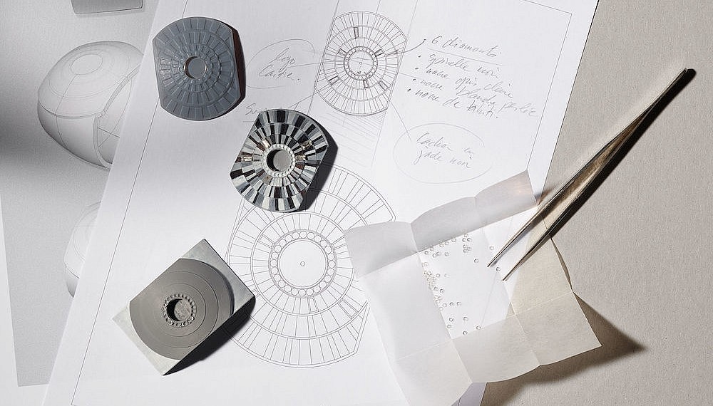 Four of the watches bear the ‘Baignoire’ prefix. French for ‘bath,’ the original Baignoire dates from 1906 and is — you guessed it — an elegant, classic dress watch with an oval shape. The Libre collection Baignoires, however, share an oval theme, but are rather avant-garde and striking with their black-and-silver theme. The Debordante (‘overflowing’) sports a near-unmarked black face but is ringed with a mane of gems. The Infinie (‘endless’) is a cleanly-cut bracelet with a tiny watch dial surrounded by a dazzling array of diamonds and mother-of- pearl. The Etoilee (‘starlit’) features a horizontally-oriented dial and a chandelier-like bracelet of dozens of diamonds and black spinels. The Interdite (‘forbidden’) is likewise horizontally set, but the case is wrapped with bold black strips that, if you look closer, resemble roman numerals.