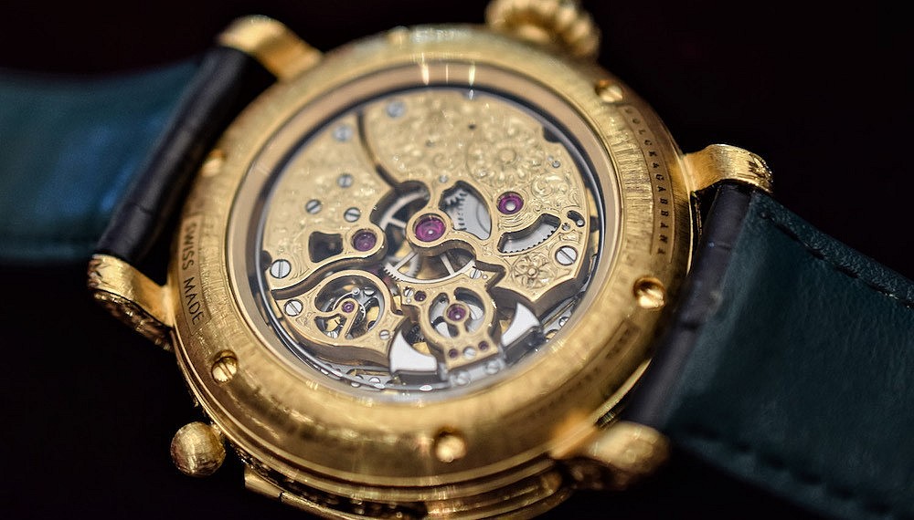 That Dolce & Gabbana has taken on significant manufacturing — including fabrication of the cases, dials, and hands — is unusual, given the brand’s status as a relative newcomer to watchmaking. The cases are cast and then hand-carved and engraved. Such involved steps do not easily lend themselves to modern serial production, but they do allow for a high level of creative freedom. The tourbillon minute repeater in this first Alta Orologeria line has an elaborately decorated case over a hand-polished jade dial. A later version will feature a micromosaic dial inspired by the floor of Sicily’s Duomo di Monreale.