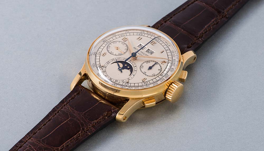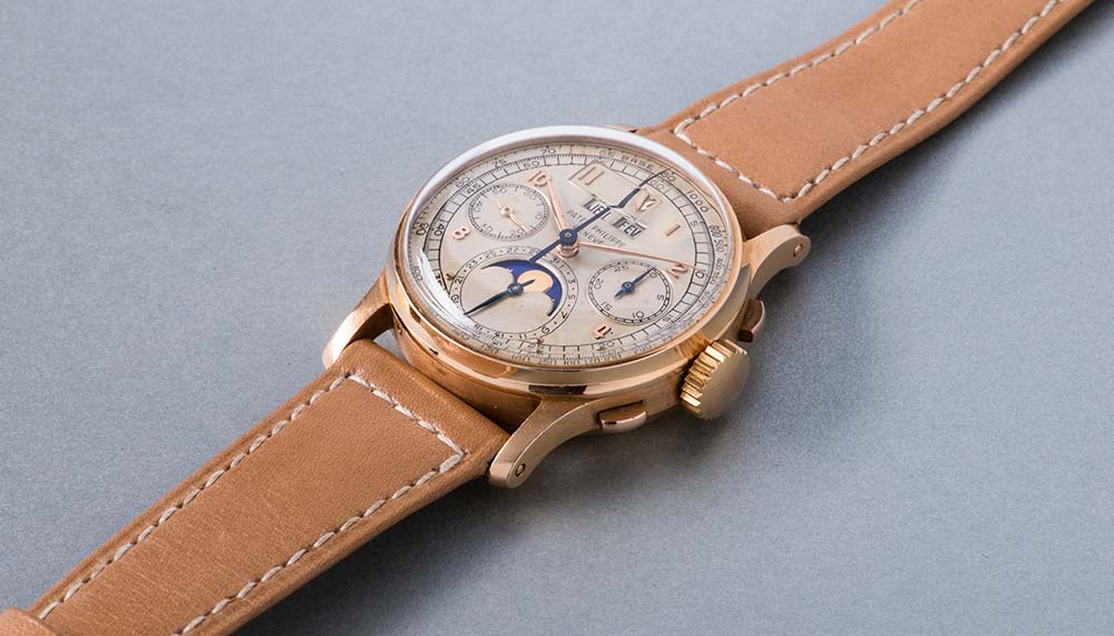 The first of only four of this extremely limited line to be made of stainless steel, the chronograph dates back to 1943 and features perpetual calendar and moon-phase complications, a tachymeter scale, and Arabic numeral hour markers. The timepiece is a testament to the manufacture’s reputation for appreciation as its estimated value was set at less than US$3 million before a 13-minute bidding battle ensued.