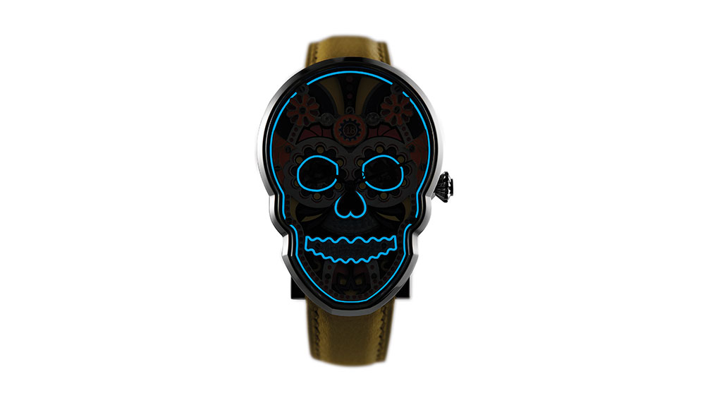The greatest challenge Kruger has faced has been establishing supplier relationships: Not only is she a non-Swiss in a very insular industry, but the unusual nature of her designs can be off-putting to the more conservative personalities within the watchmaking establishment. While skull-themed watches date back to the earliest days of mechanical clockmaking, Kruger’s creations sport highly original details. The three-layer dials feature intricate cutaway sections that provide a view of the movement and reference the traditional art of skeleton watchmaking.