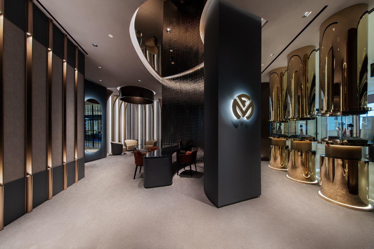 The independent Swiss watchmaker Franck Muller has been a popular brand in the Malaysian horological community for some time now, with its first standalone boutique opening here in 2021. That presence has been solidified with a grand new storefront, occupying a prime location on Level 2 of Pavilion Kuala Lumpur—an expansive one at that, at 1,887sqft. The styling is modern and luxe, with warm tones and reflective surfaces suggesting the precious metals and stones that the brand is known for. Next to its wide array of current offerings, a display wall features some of Franck Muller’s greatest hits—the likes of Crazy Hours, Giga Tourbillon, and Thunderbolt Tourbillon, all of which are testaments to why the brand is called ‘master of complications’. A sequestered private bar is reserved for collectors and other VIPs. Outside, a floor-to-ceiling curved display showcases the brand’s bold and typically highly technical offerings—an attention-grabbing display at one of the mall’s major thoroughfares.