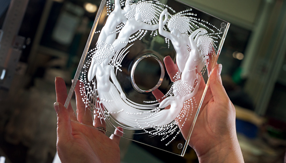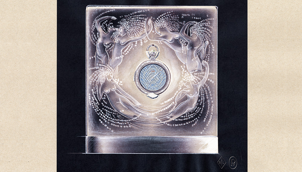 Drawn to this fable of primordial emotions, Lalique in 1935 unveiled his Coutard Fountain – a crystal table clock depicting that very myth. A square crystal depicts visions of the curvaceous naiad amid crystal bubbles, two motifs that have become a signature of Lalique.