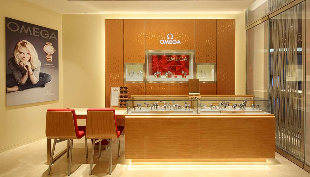 Omega KLCC follows the brand’s global aesthetic concept, itself inspired by natural elements such as air, water and sunlight. Bedecked in reconstituted zebra wood furniture and dominant tones of cream and champagne, Omega’s complete range of timepieces for him and for her can be found here alongside a selection of leather products and accessories.