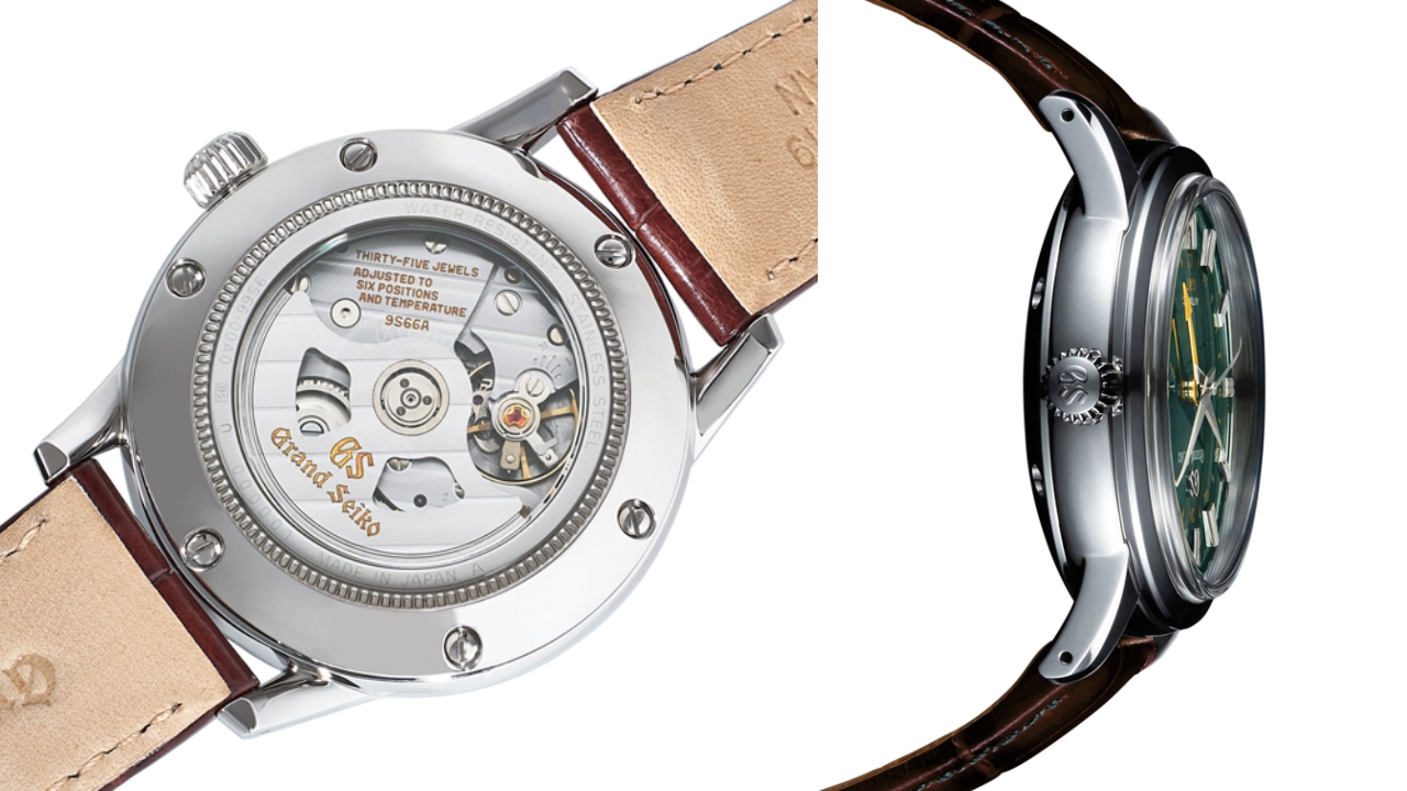 The dial is housed in the same case design as Grand Seiko’s bestselling SBGM221 model and comes equipped with the 221 components that make up its 9S66 movement—an automatic watch with a 3-day power reserve—visible through the caseback. The 39.5 mm by 13.7 mm case is topped off in the brand’s signature Zaratsu polishing technique, known for its distortion-free mirror finishing.