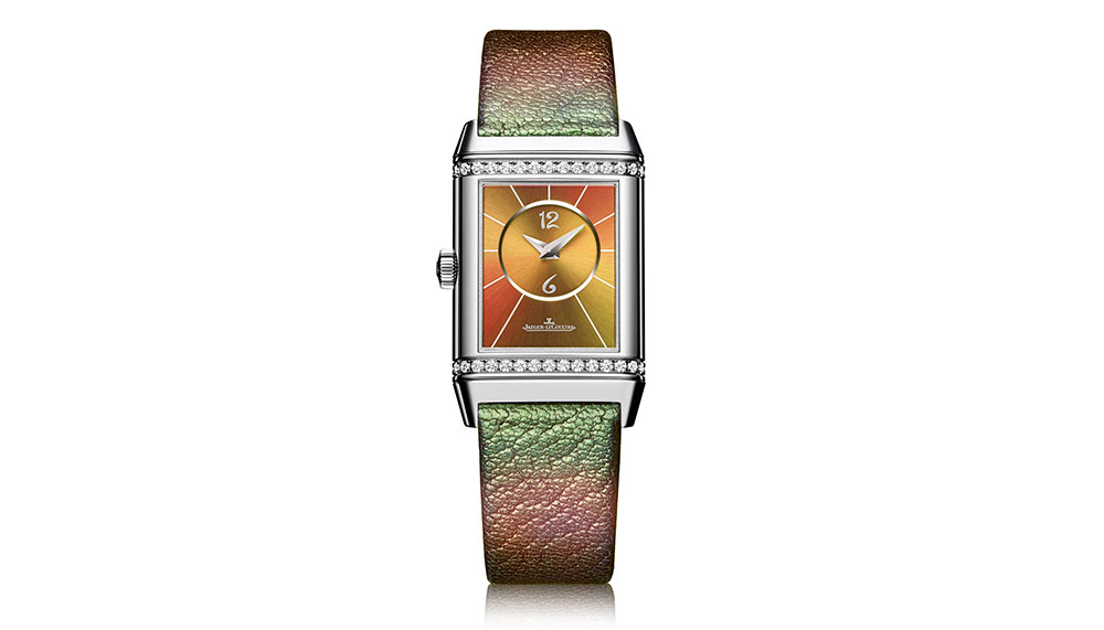 The heart of the Reverso remains: its pure Art Deco lines flanked by two rows of diamonds on the dial has been sent to glittering new heights with Louboutin’s unbounded imagination.