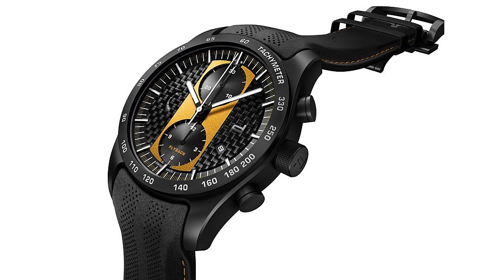 Each of the 500 new chronographs will be cased in lightweight titanium, finished in black via a titanium carbide physical vapor deposition (PVD). Each piece will be sold on a titanium bracelet, and will be accompanied by a pair of leather straps (with colour-matched contrasting stitching) as well as a Porsche Design Strap changing tool. Both the watches and the cars are now available for order via Porsche Centres worldwide, and delivery of each watch is scheduled in sync with the delivery of the new car.