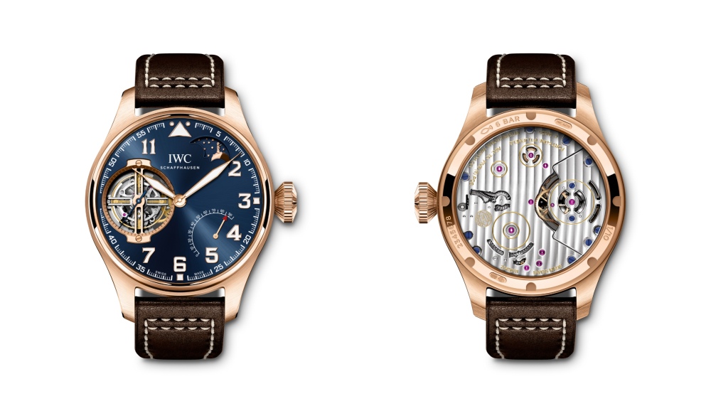The watch is limited to 10 pieces each in platinum or hard gold. The latter is a newly-developed alloy of red gold which IWC boasts of being harder and up to 10 times more wear-resistant (that 1940s pilot would approve, surely), and provides a wonderfully warm contrast to the lustrous blue dial.