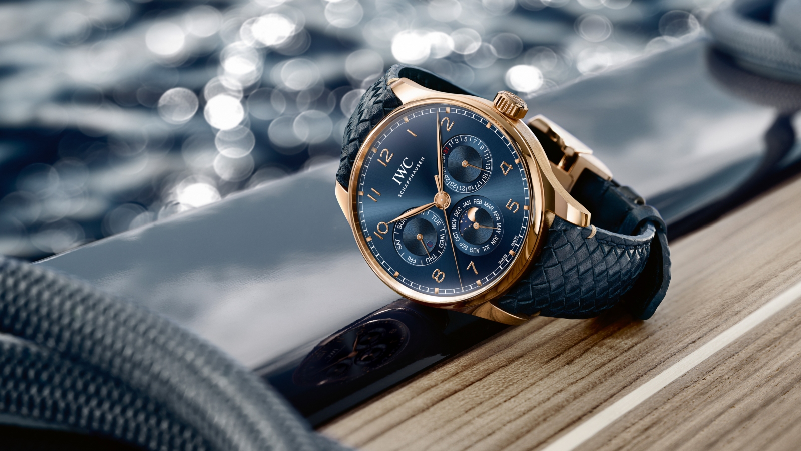 For all its Swiss-German pride, IWC Schaffhausen has built its contemporary reputation on a model named the Portugieser, produced in 1939 and named after two Portuguese merchants who challenged the watchmaker to produce a wristwatch with the precision of a marine chronometer. Now, more than eight decades after IWC fulfilled that request, the Portugieser collection is getting a massive re-boot that includes a new perpetual calendar, a nautical sports chronograph and the first watch fitted with a tide indication—all equipped with in-house calibers.
